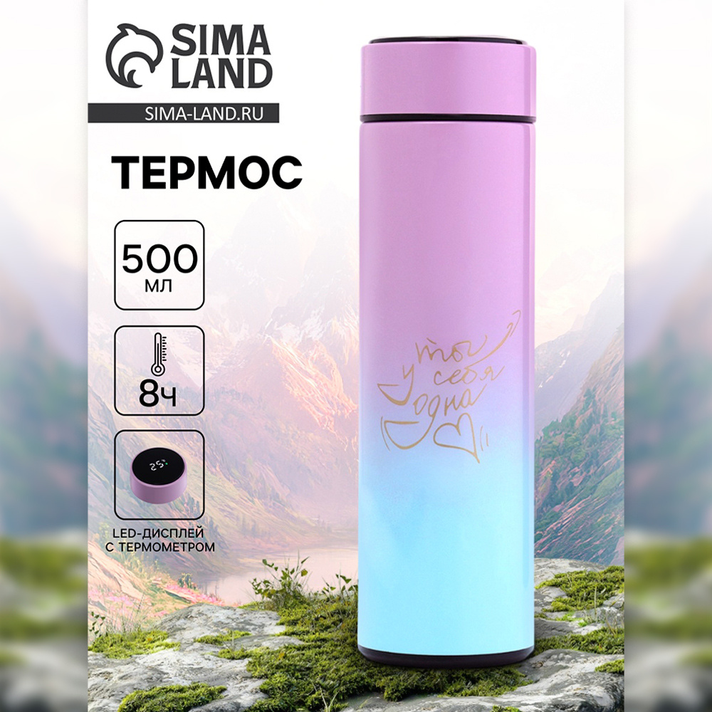Термос 6920739 Ты у себя одна, с ситечком, с датчиком температуры, нержавеющая сталь, 500 мл