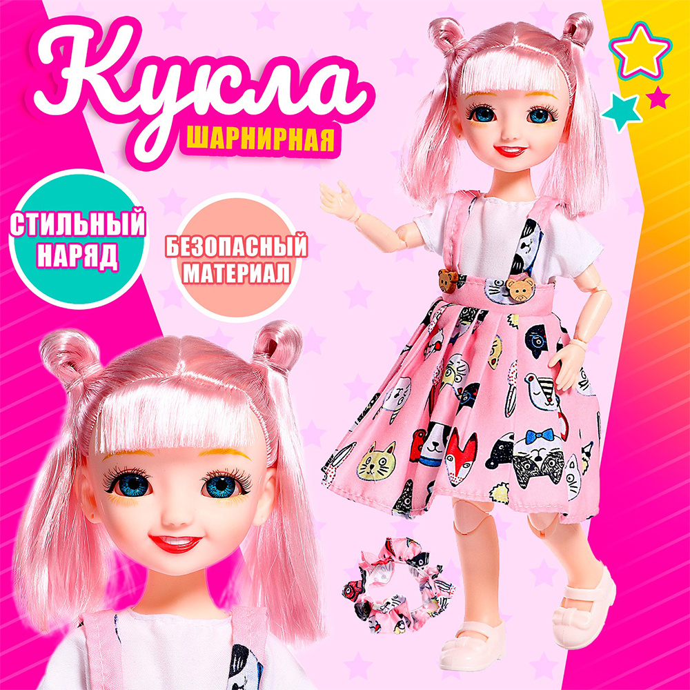 Кукла 7386696 шарнирная, Ия, в платье, 8*5,5*29 см Пластик, текстиль в ассортименте