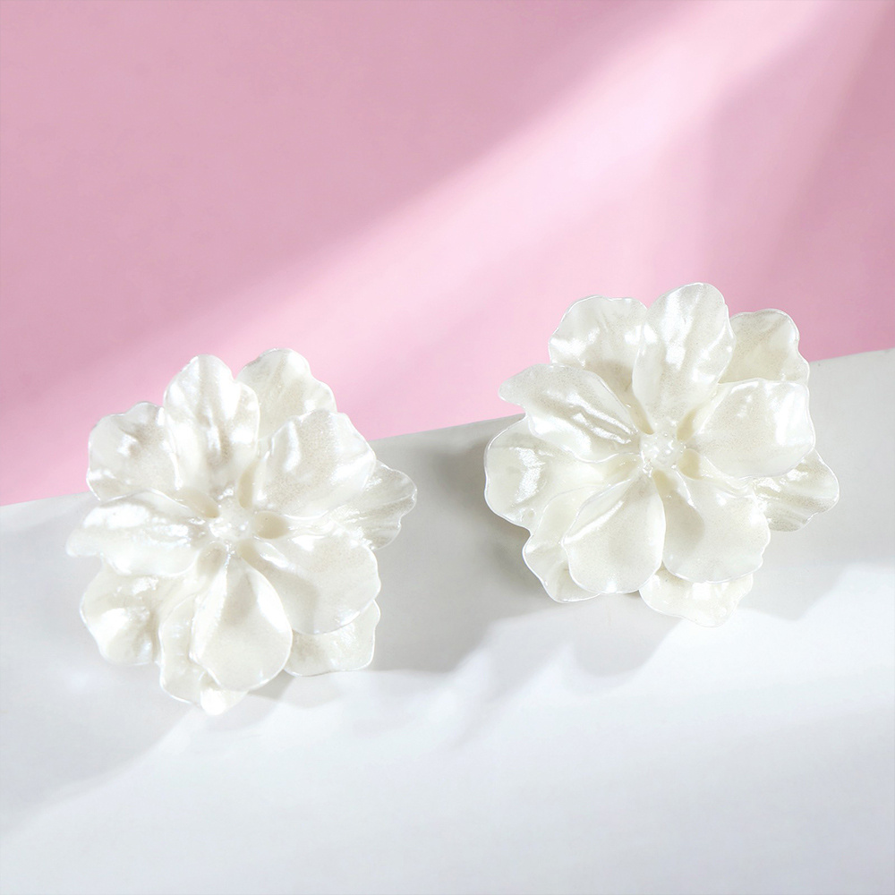 Бижутерия Queen Fair 10872681 Серьги с жемчугом Цветы, крупные, белые в серебре