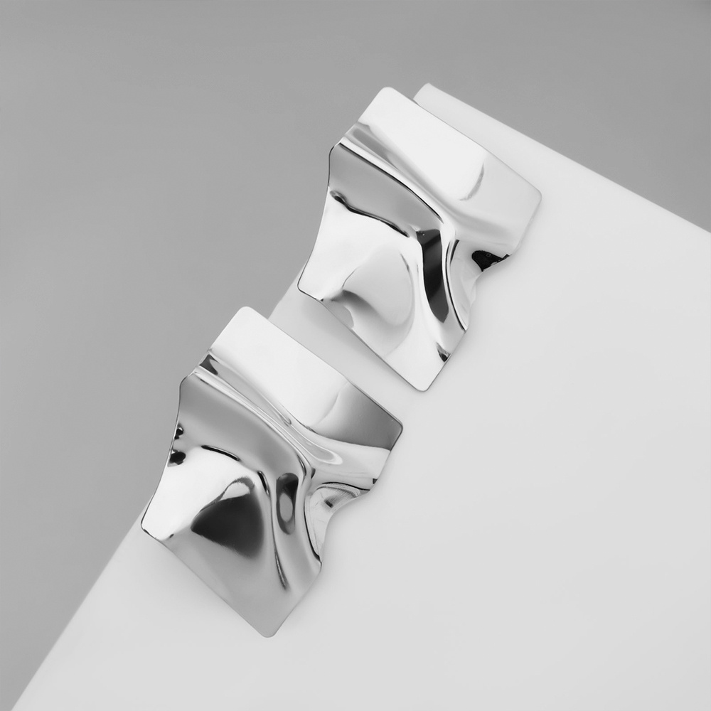 Бижутерия Queen Fair Серьги Атмосфера, ромб мятый, цвет:серебро, бижутерный сплав, 5,5 см