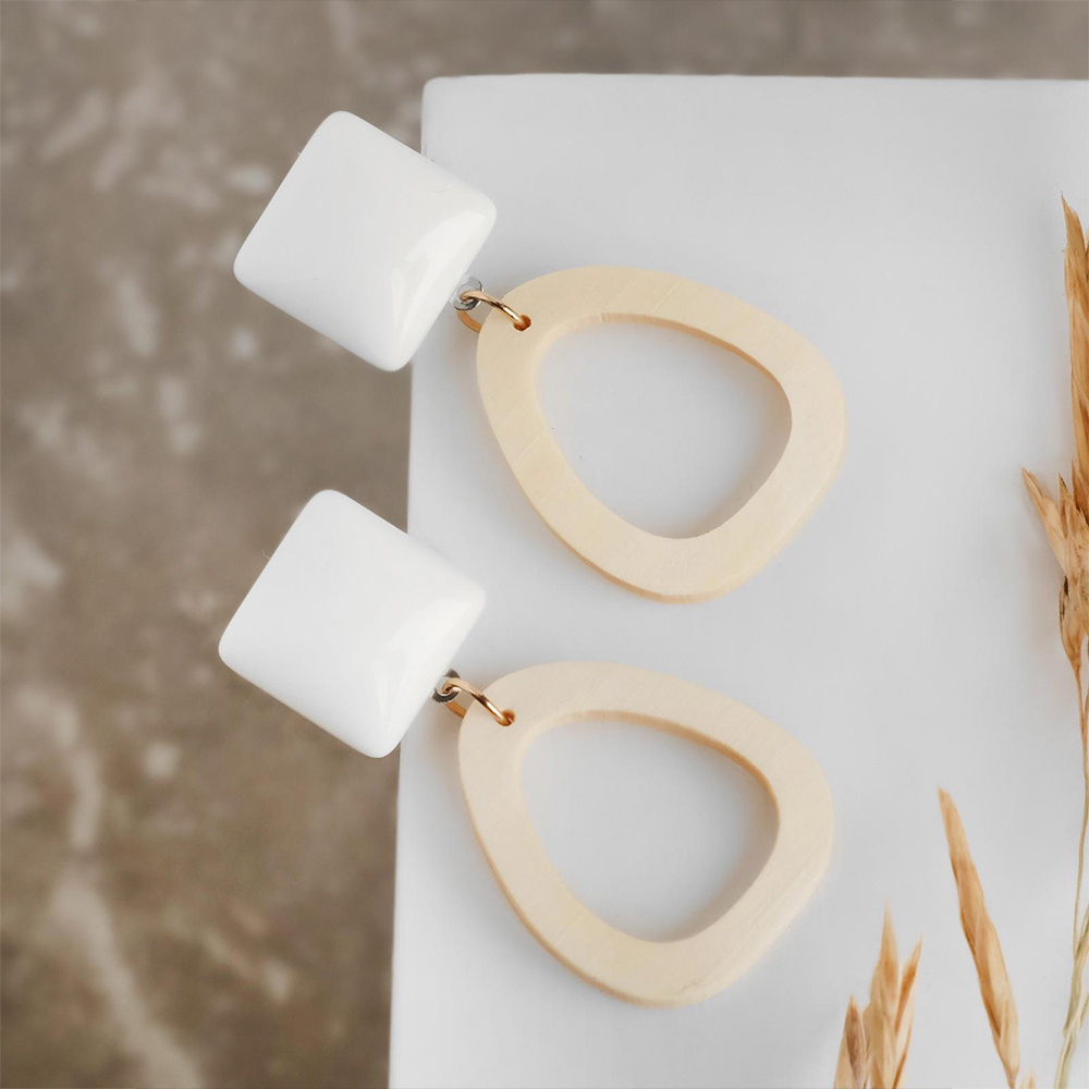 Бижутерия Queen Fair Серьги Ваканда, треугольник, цвет:бело-бежевый, Дерево, полистоун, бижутерный сплав, 4,8 см
