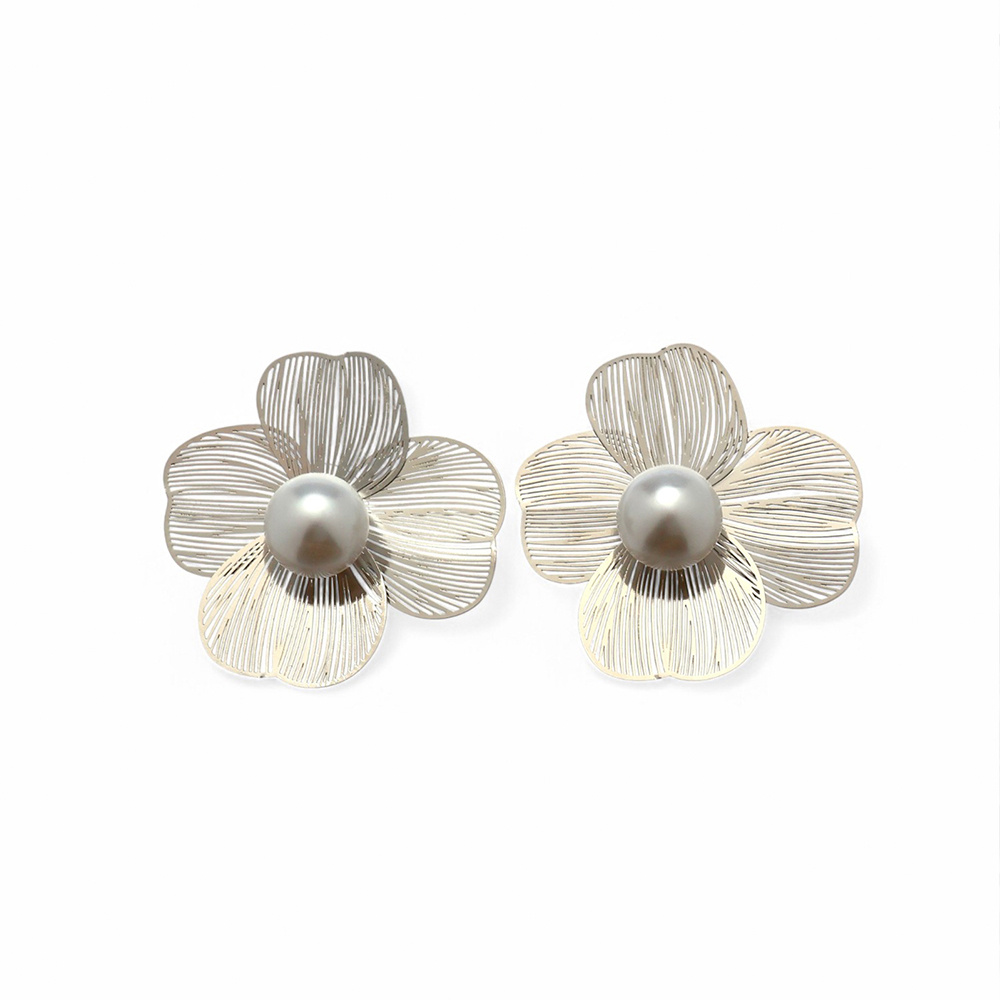 Бижутерия Queen Fair 10872681 Серьги с жемчугом Цветы, крупные, белые в серебре