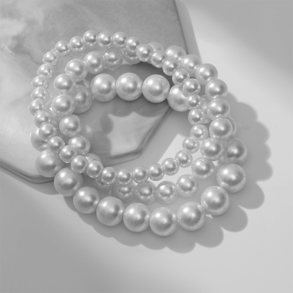 Бижутерия Queen Fair 125195 Браслет жемчуг Трио, пластик, силикон, белый