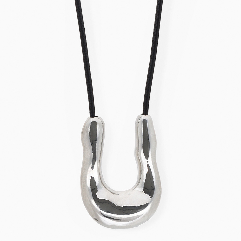 Бижутерия Queen Fair 10840664 Кулон на шнурке Подкова крупная, искусственная кожа, бижутерный сплав, серебро, 90 см