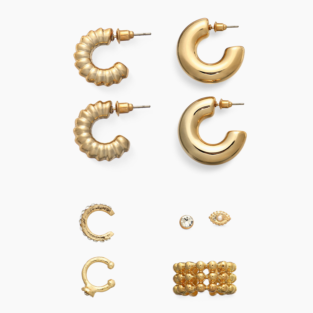 Бижутерия Queen Fair 10826354 Серьги каффы Бублик, пластик, стразы, бижутерный сплав, железо, золото, 9 шт