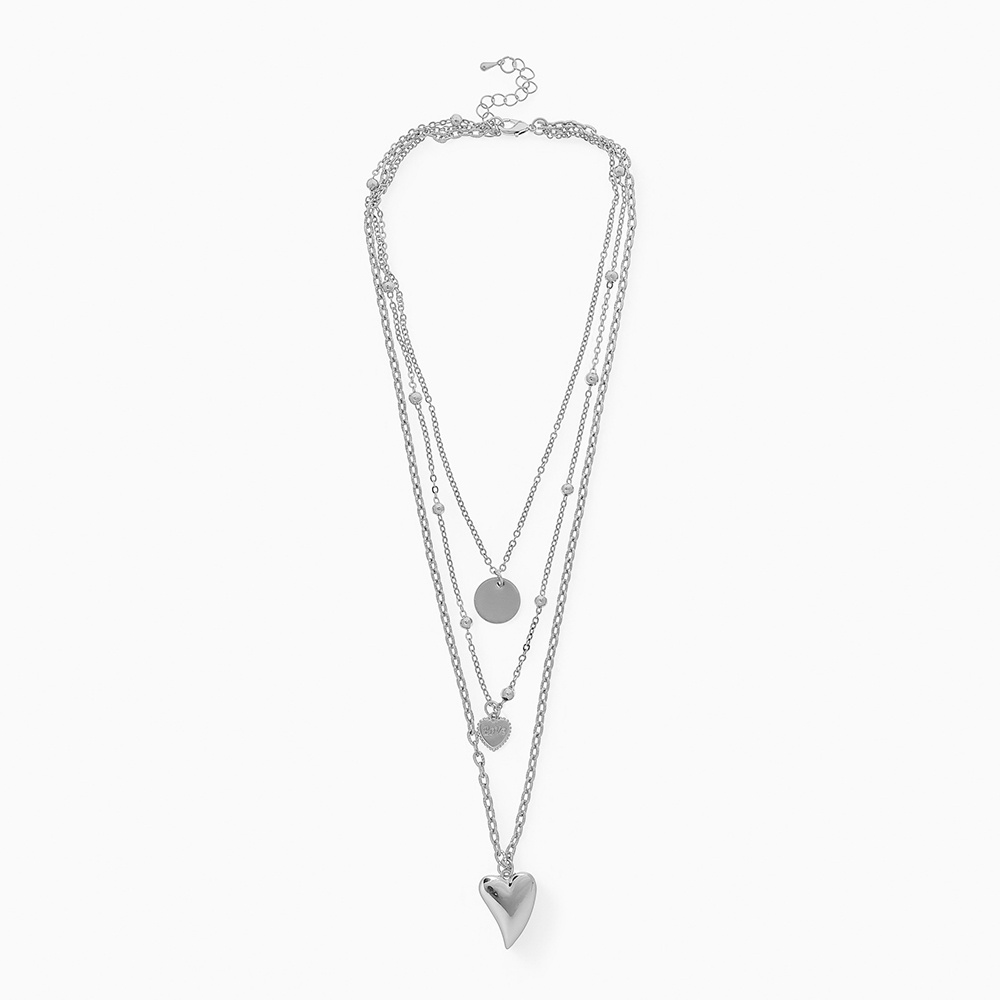 Бижутерия Queen Fair 10789438 Кулон Цепь два сердца и круг, бижутерный сплав, серебро, 46 см