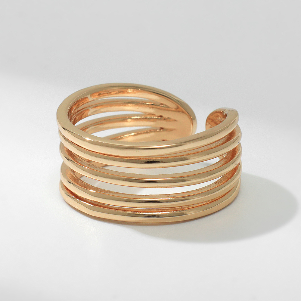 Бижутерия Queen Fair 10472105 Кольцо металл Тренд три полосы, безразмерное, медь, золото