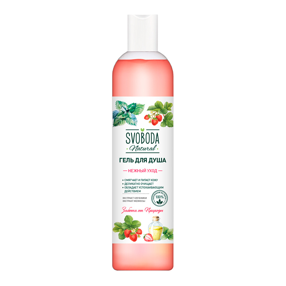 Гель для душа SVOBODA нежный уход экстракт клубники и мелиссы, 430 мл