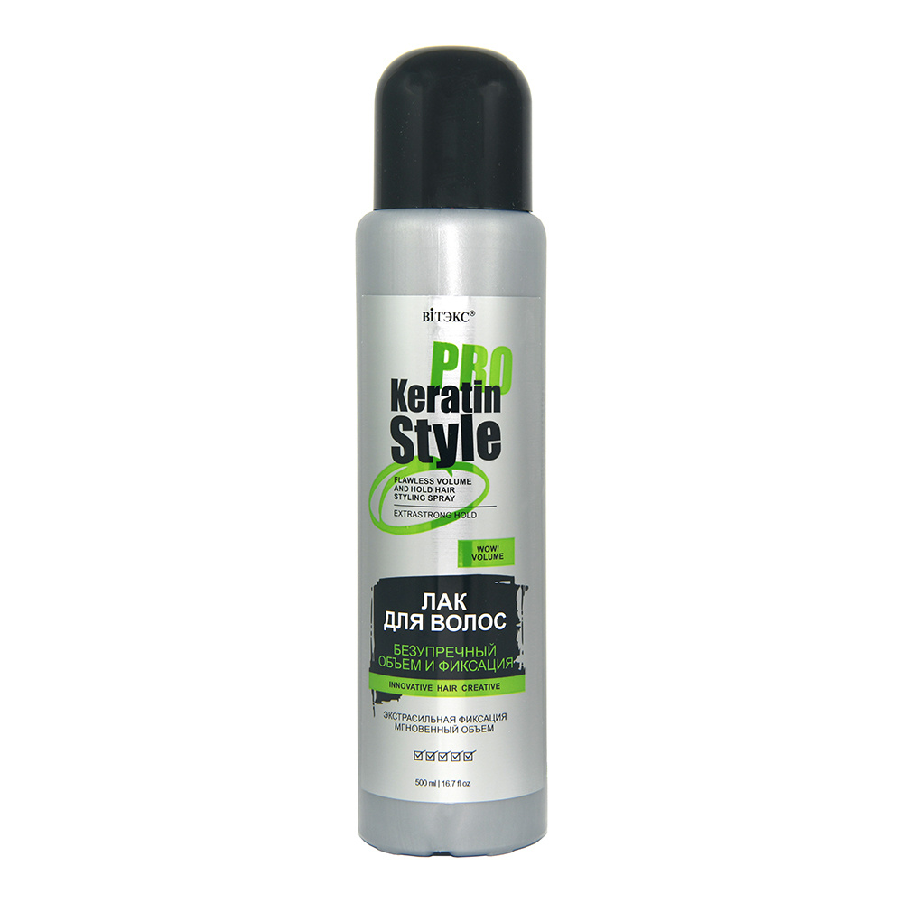 Лак для волос Biтэкс KERATIN PRO Style безупречный объем и фиксация, запасной блок, экстрасильная фиксация, 500 мл