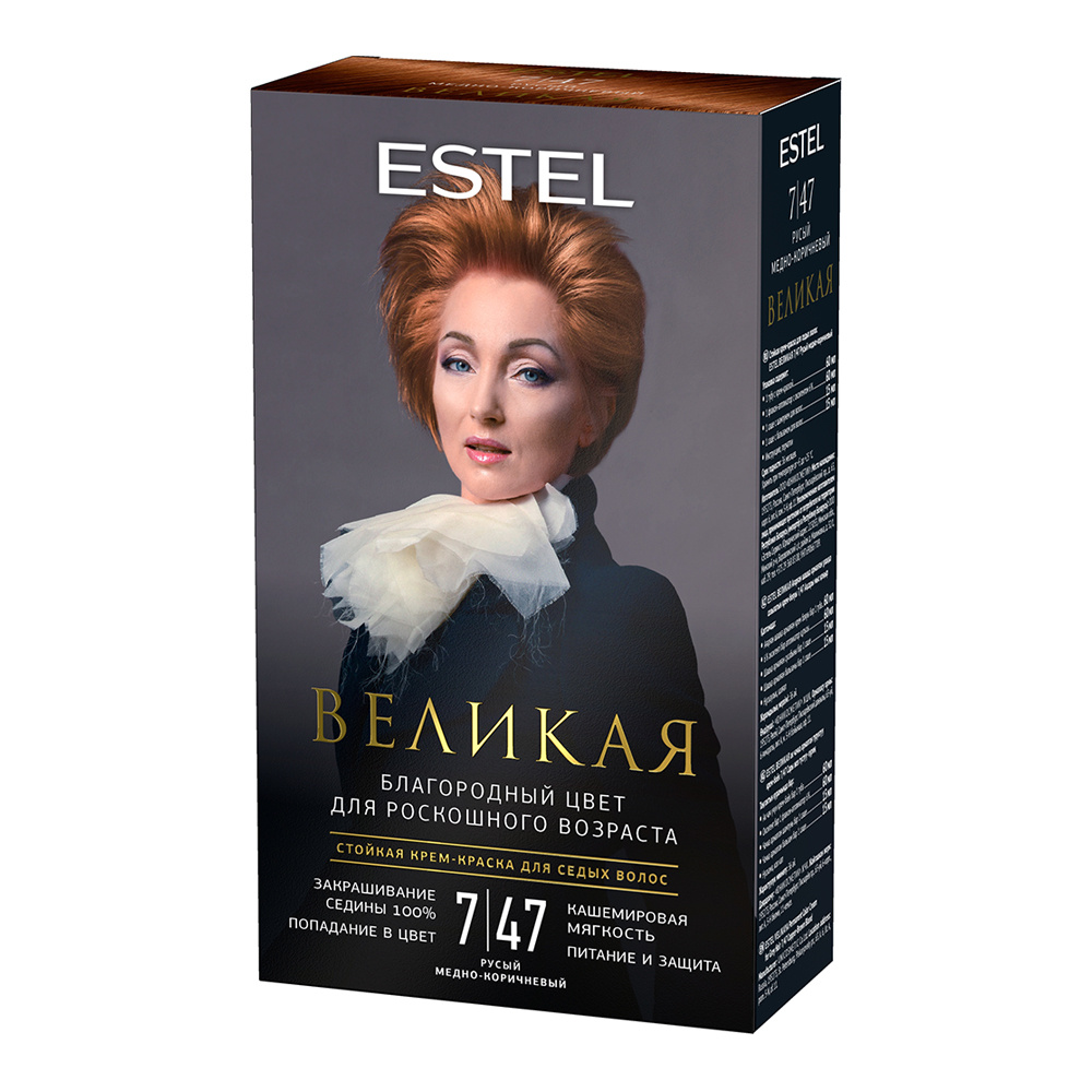 Стойкая краска-гель для седых волос Estel Великая тон 7/47, русый медно-коричневый