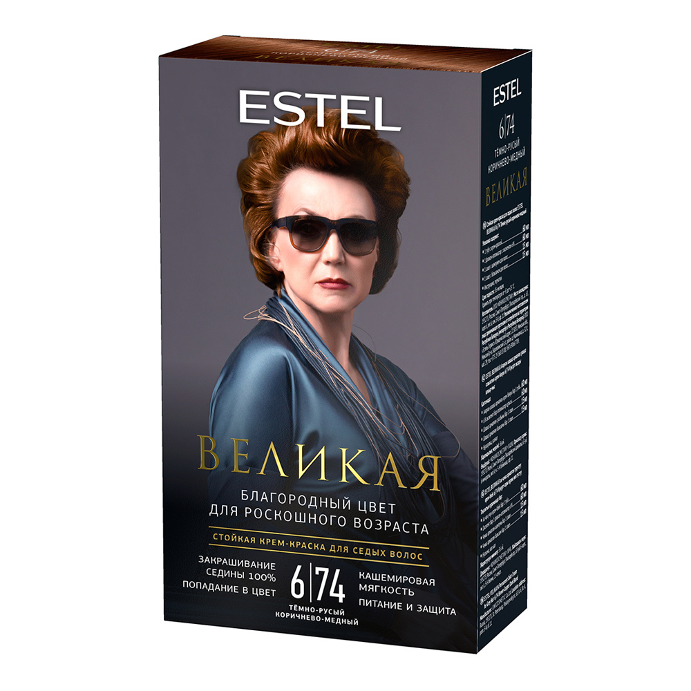 Стойкая краска-гель для седых волос Estel Великая тон 6/74, тёмно-русый коричнево-медный