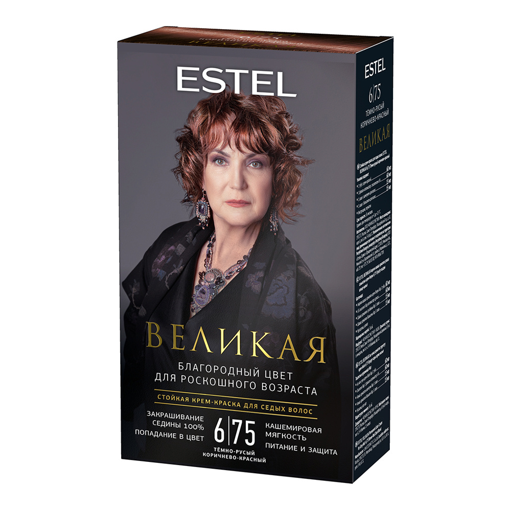 Стойкая краска-гель для седых волос Estel Великая тон 6/75, тёмно-русый коричнево-красный