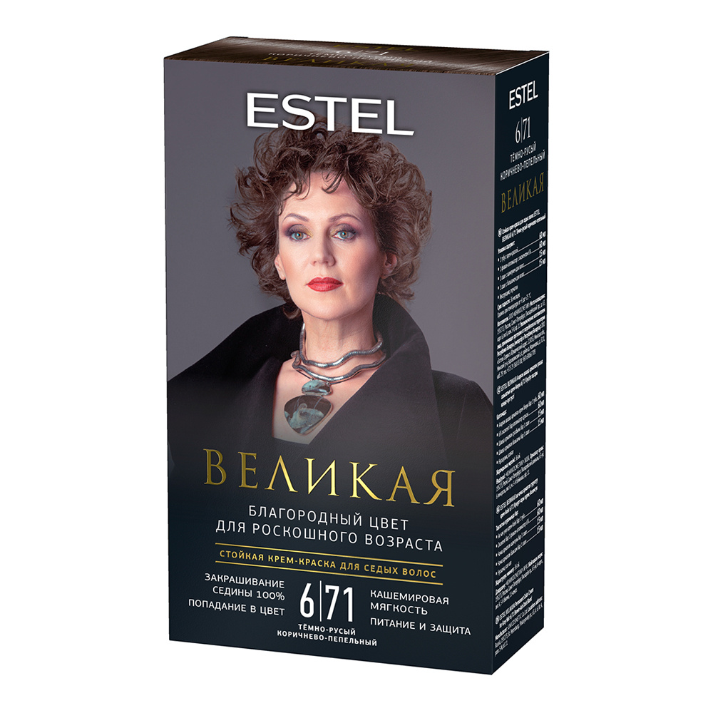 Стойкая краска-гель для седых волос Estel Великая тон 6/71, тёмно-русый коричнево-пепельный