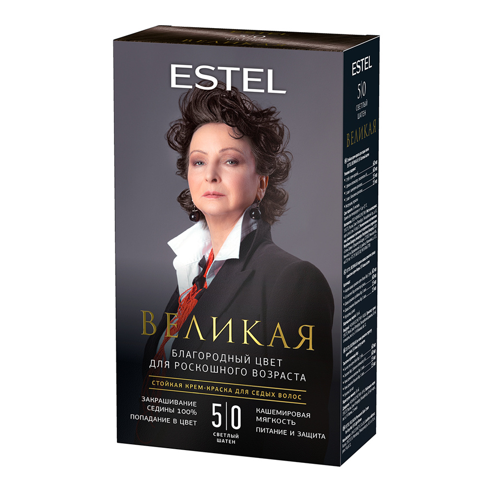 Стойкая краска-гель для седых волос Estel Великая тон 5/0, светлый шатен
