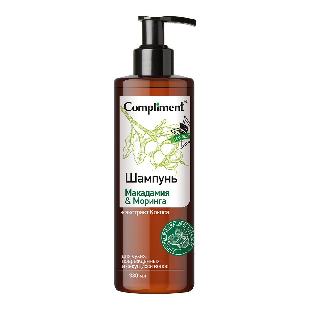 Шампунь Compliment Eco Best, Макадамия и Моринга для сухих поврежденных и секущихся волос, 380 мл