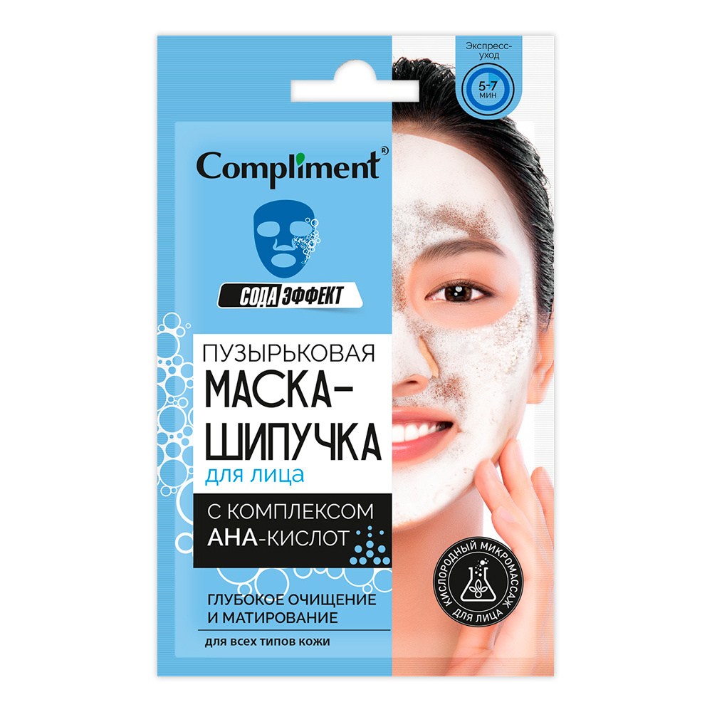 Пузырьковая маска-шипучка для лица Compliment с комплексом AHA-кислот, саше, 15 мл