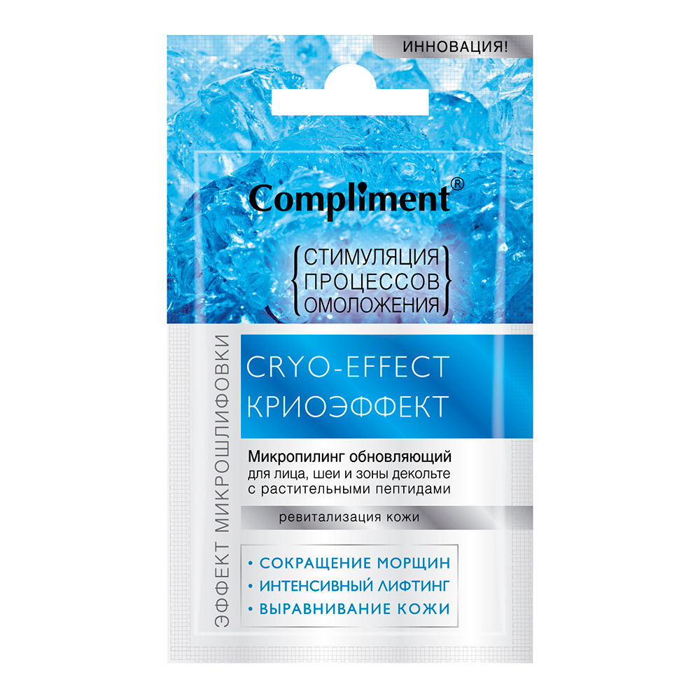Микропилинг для лица, шеи и зоны декольте Compliment Криоэффект обновляющий с растительными пептидами, 7 мл
