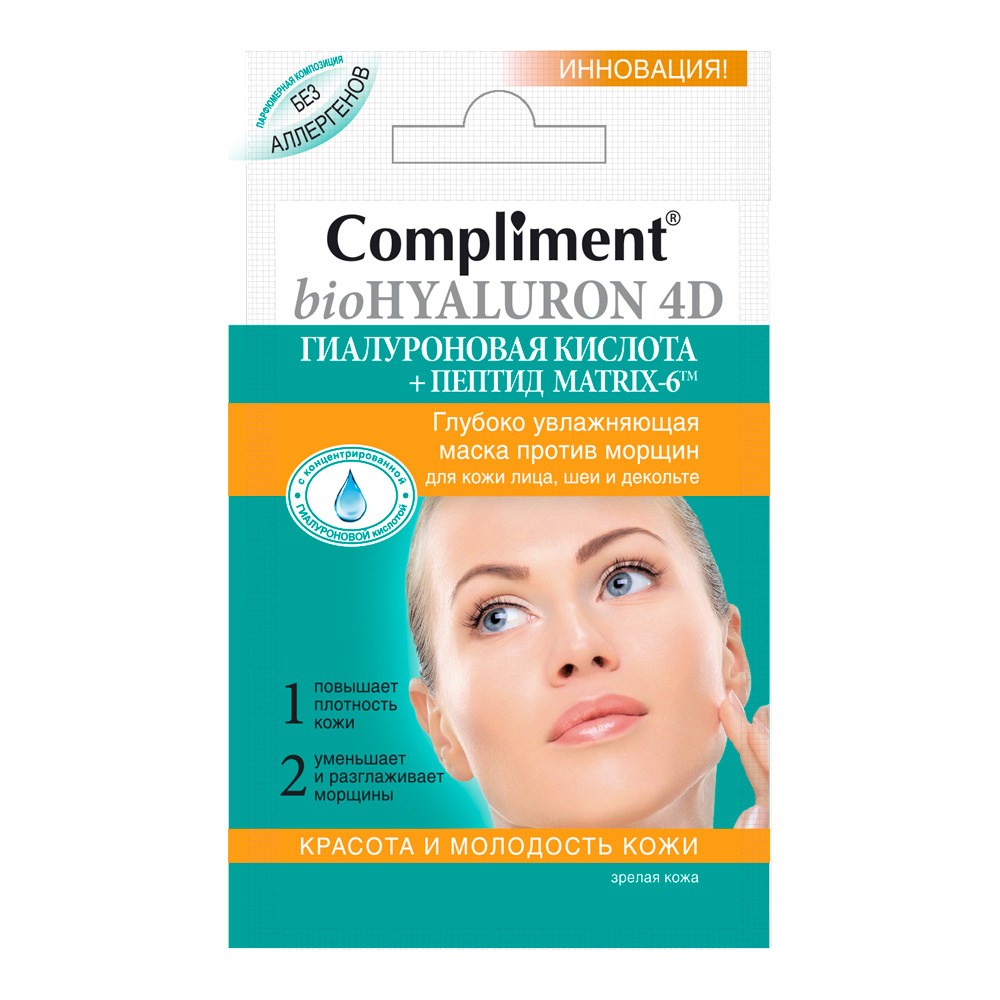 Маска для лица Compliment bioHyaluron 4D Глубоко увлажняющая против морщин, 7 мл