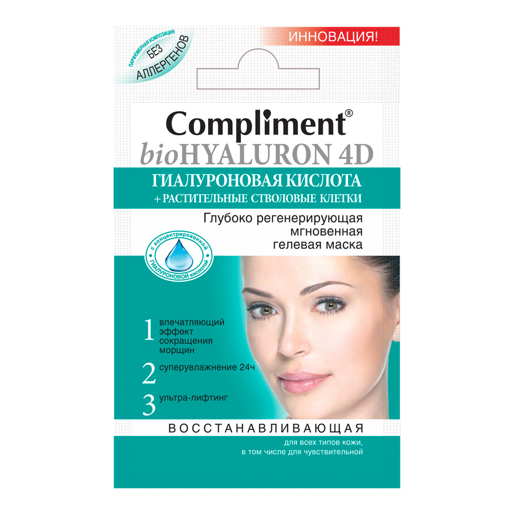 Маска для лица Compliment bioHyaluron 4D Глубоко регенерирующая мгновенная гелевая, 7 мл