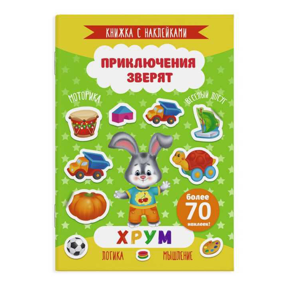 Книга 49909 Приключения зверят, Хрум, с наклейками, 4 листа
