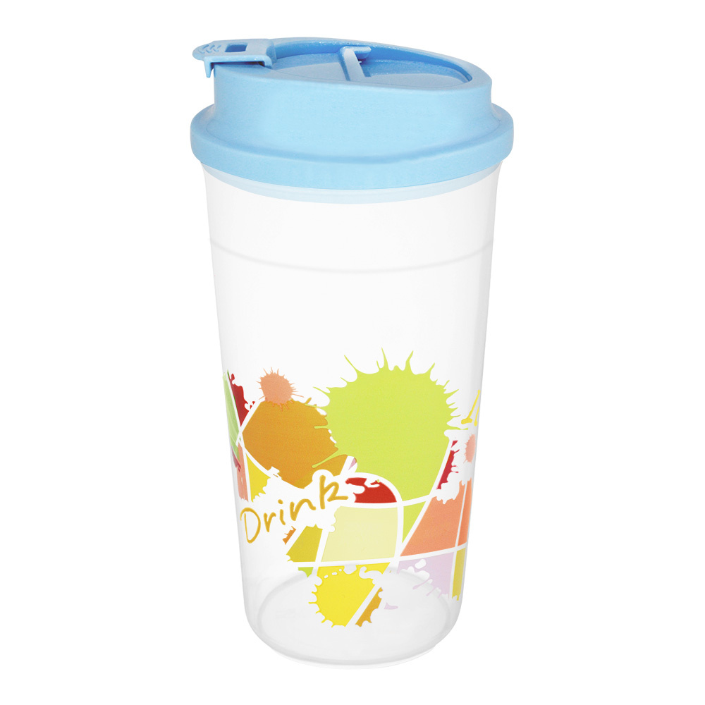 Стакан E-022A с трубочкой, пластик, голубой, 0,5 л