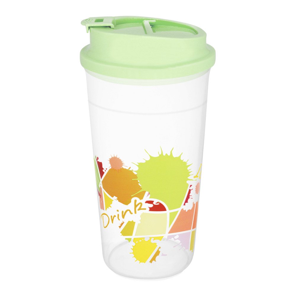 Стакан E-852 детский с крышкой, пластик, 0,6 л, зеленый