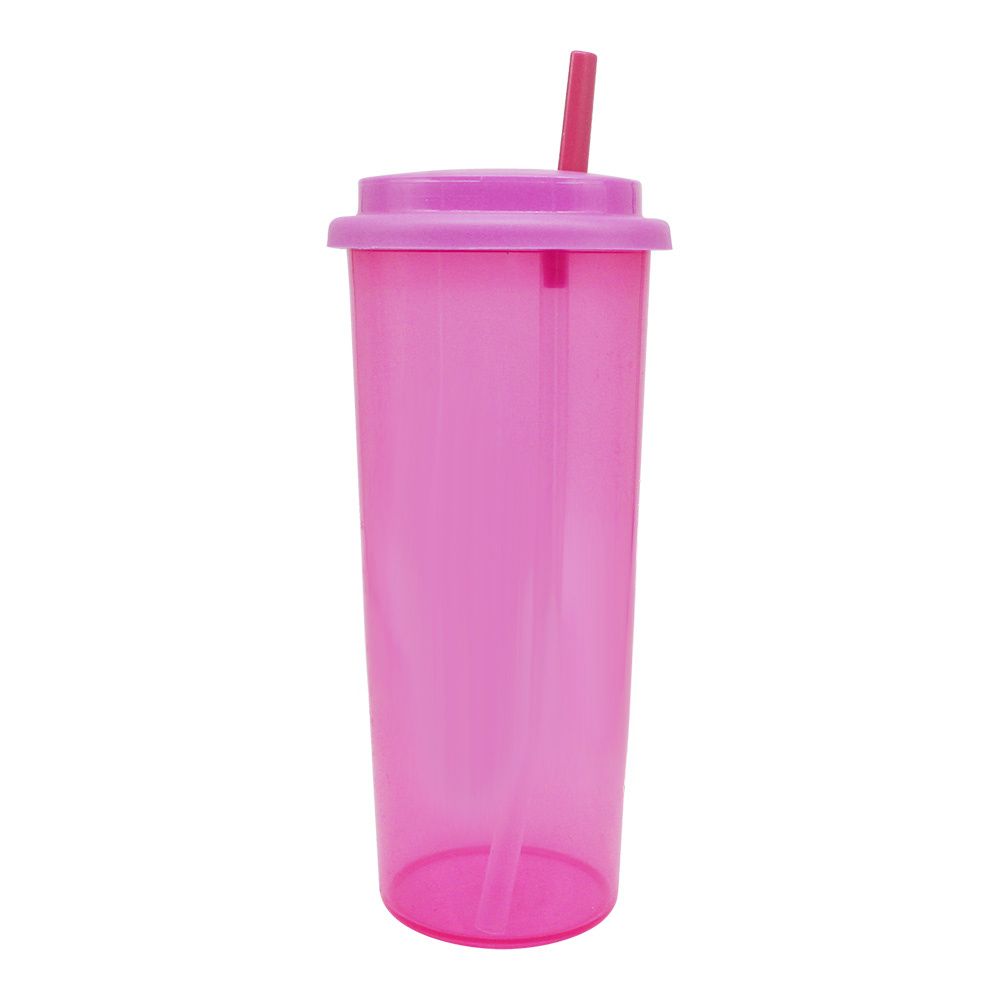 Стакан E-022A с трубочкой, пластик, розовый, 0,5 л