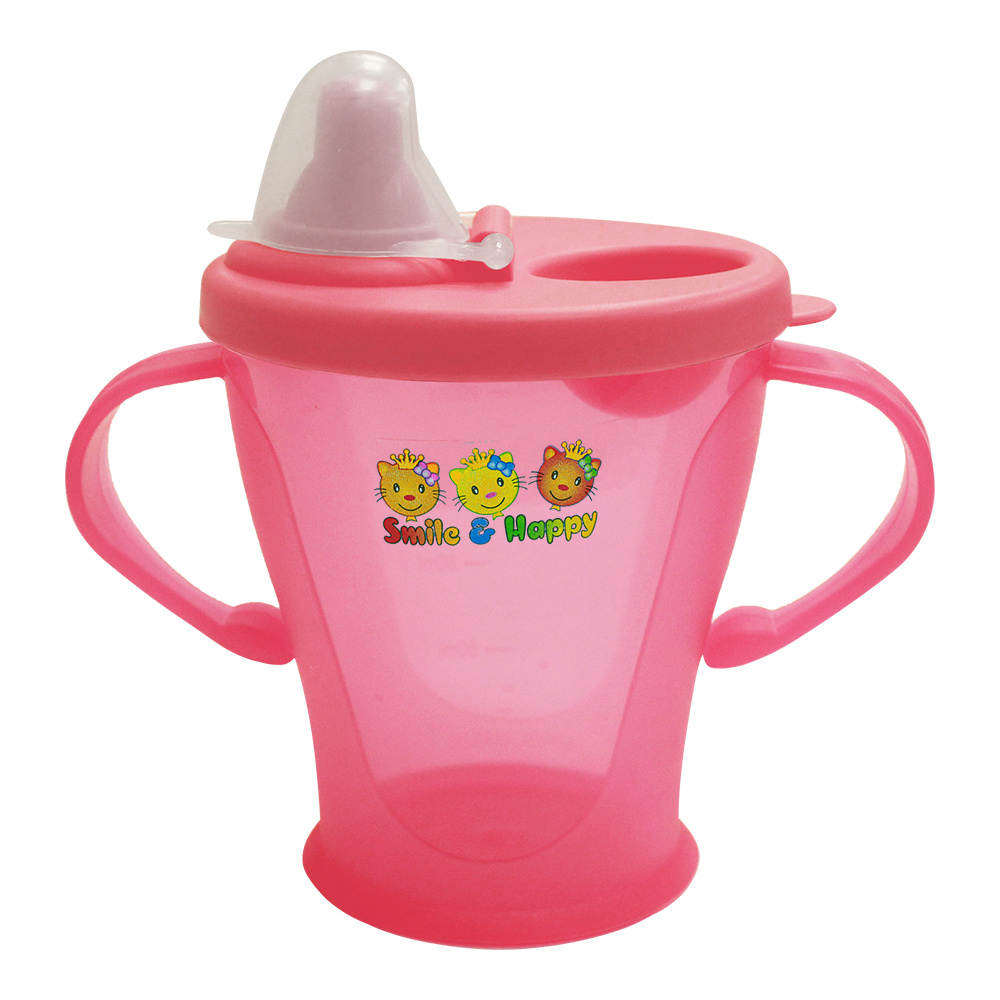 Поильник E-87 детский пластик с крышкой, 0,25 л, розовый