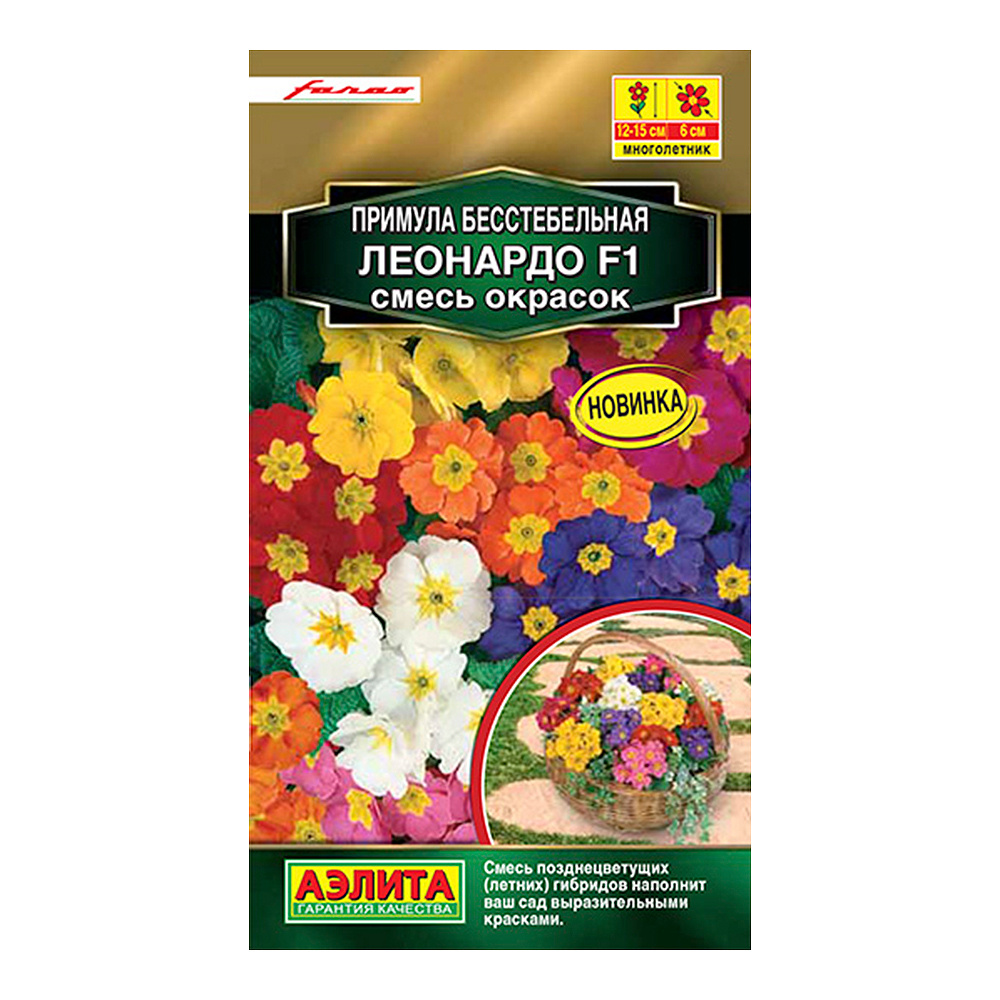 Семена АЭЛИТА Примула бесстебельная Леонардо F1 смесь окрасок, 7 шт