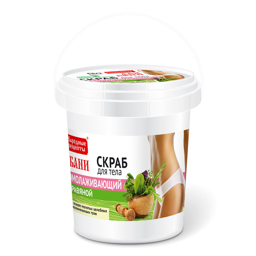 Скраб для тела Народные рецепты травяной омолаживающий для бани, 150 мл