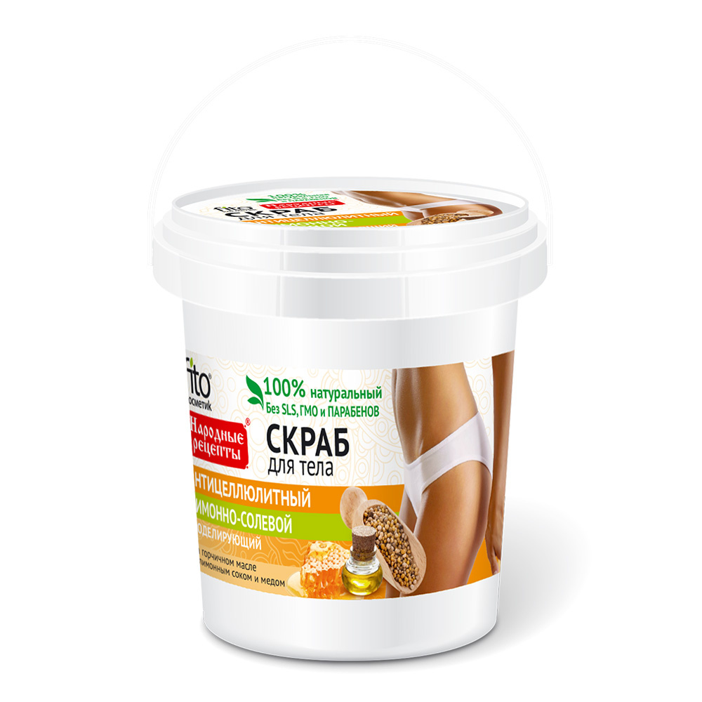 Скраб для тела Народные рецепты лимонно-солевой, 155 мл
