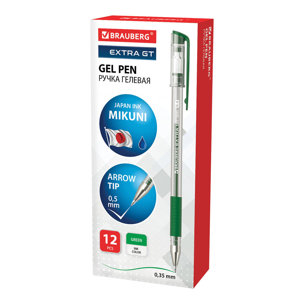 Ручка гелевая Brauberg 143922 EXTRA GT стандартный узел 0,5 мм, линия 0,35 мм, прозрачный корпус, зеленый