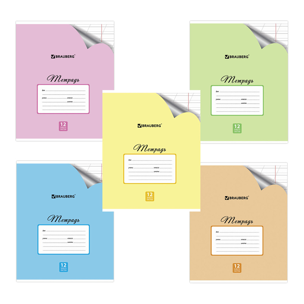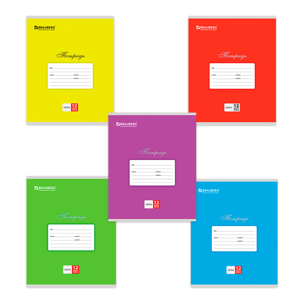 Тетрадь Brauberg 12 листов, клетка, Классика ассорти, 5 видов, 1 шт