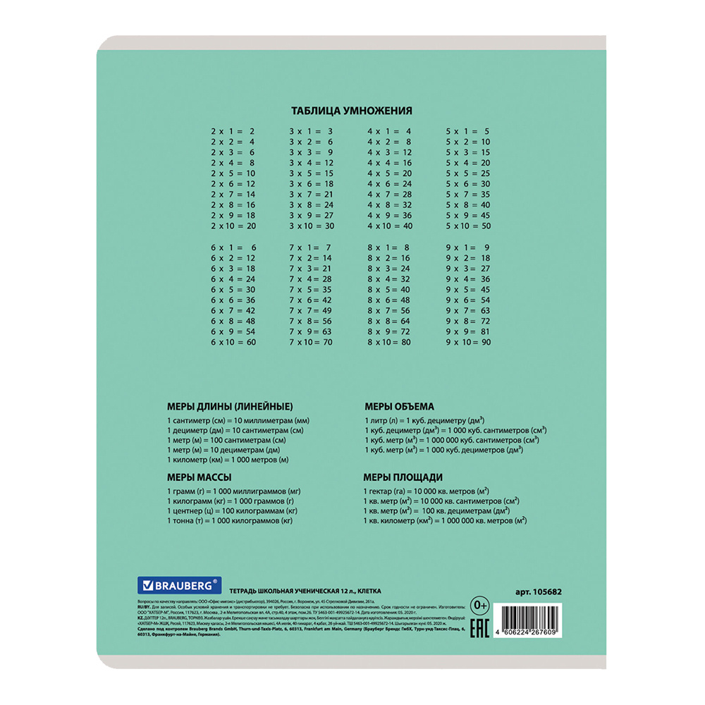 Тетрадь Brauberg 105682 12 листов, клетка, Классика new, цвет ассорти