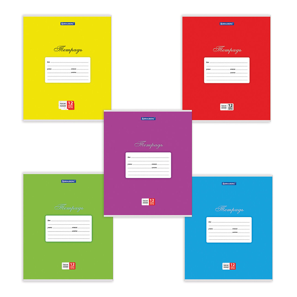 Тетрадь Brauberg 103276 классика, косая линия, Ассорти, 5 дизайнов, 12 листов