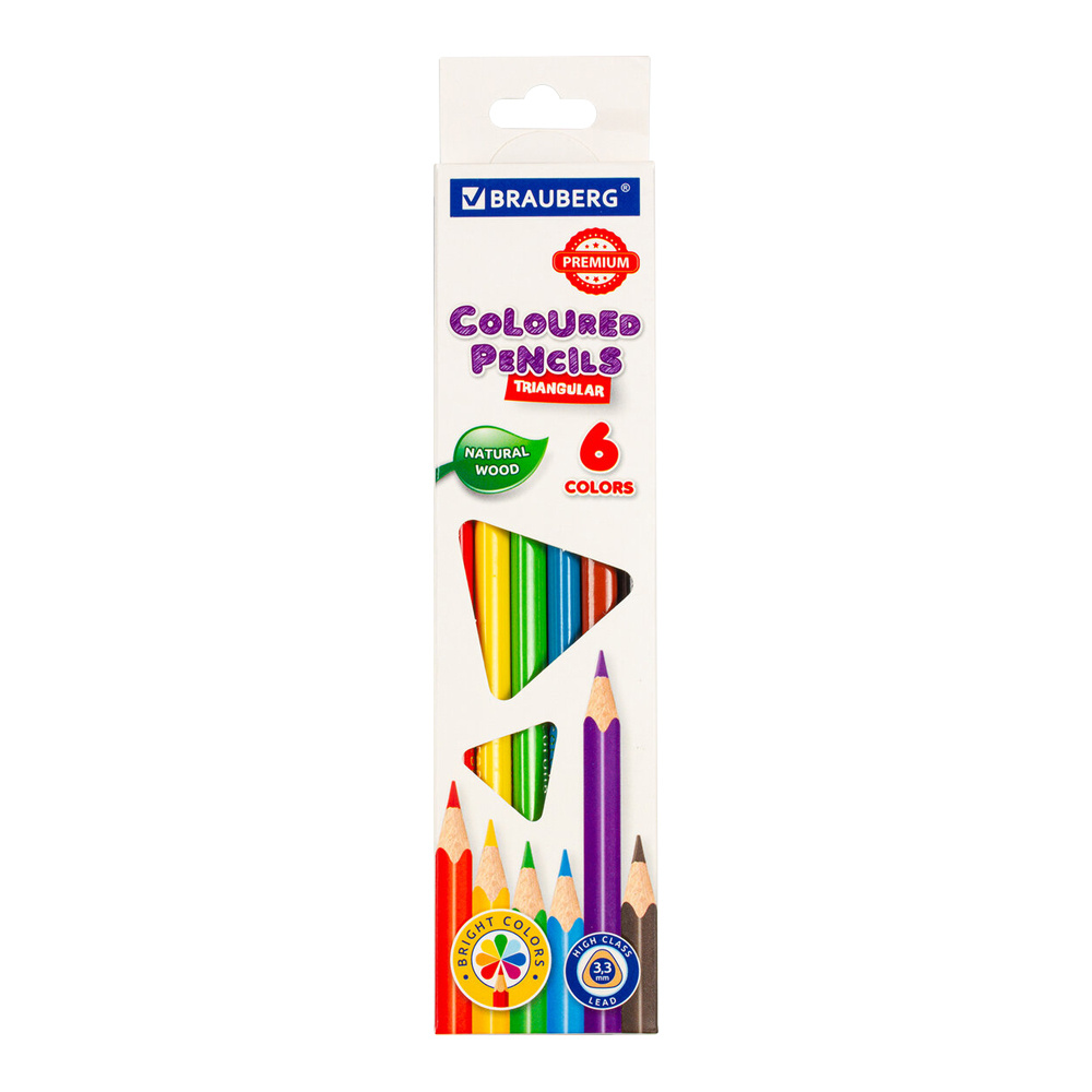 Карандаши цветные Brauberg 181650 Premium трехгранные, 6 шт