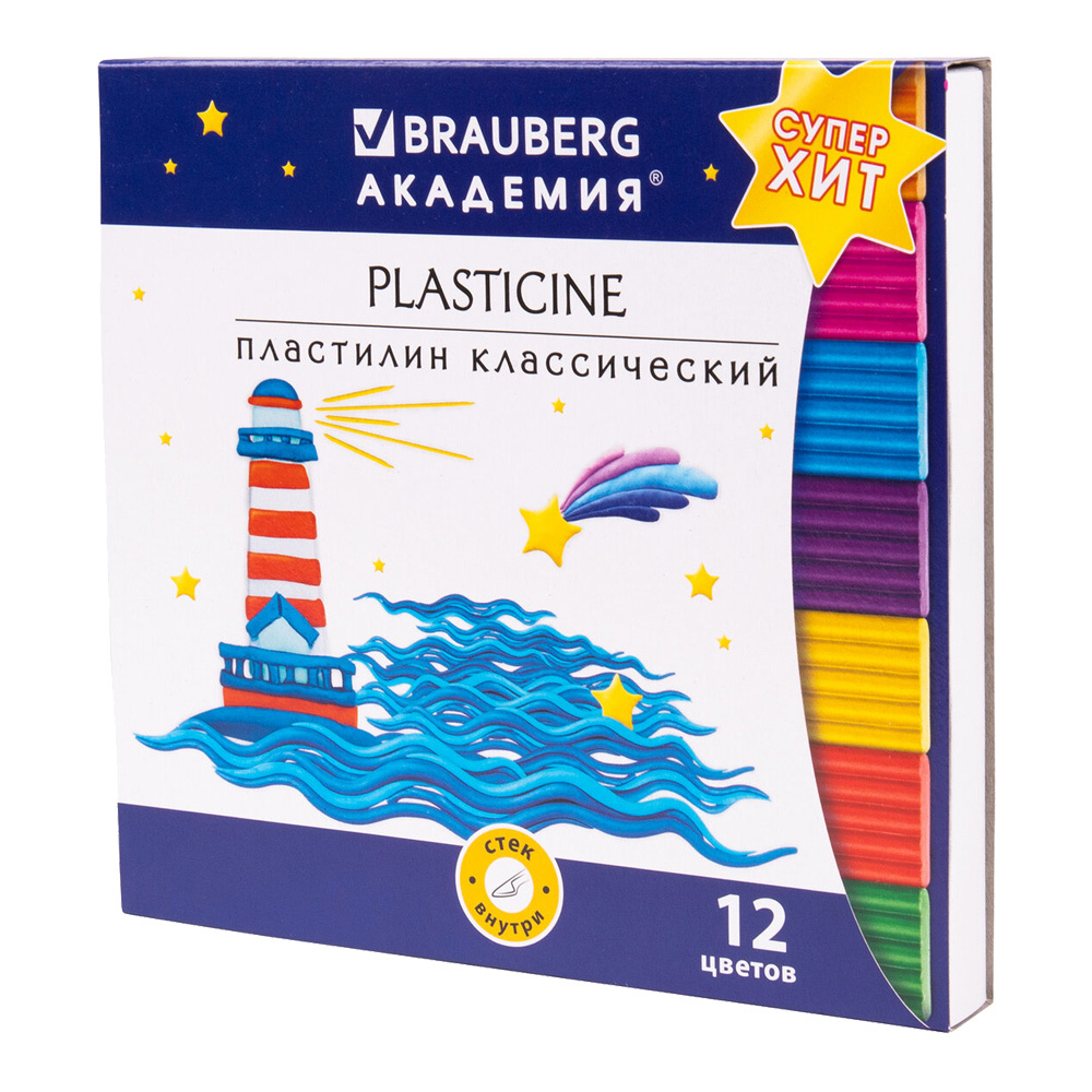 Пластилин Brauberg 106423 Академия хит, Высшее качество, со стеком 240 г, 12 цветов