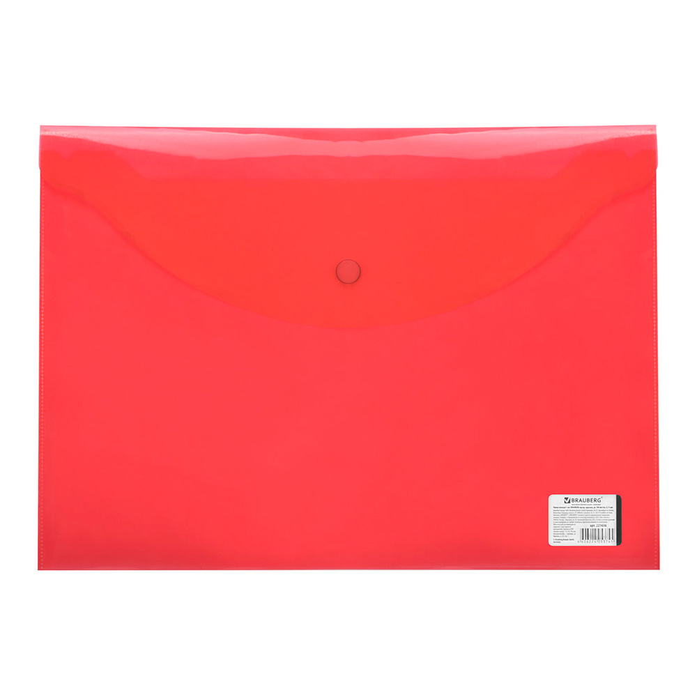 Папка-конверт Brauberg 221636 с кнопкой А4, 100 листов, прозрачная, цвет:красный