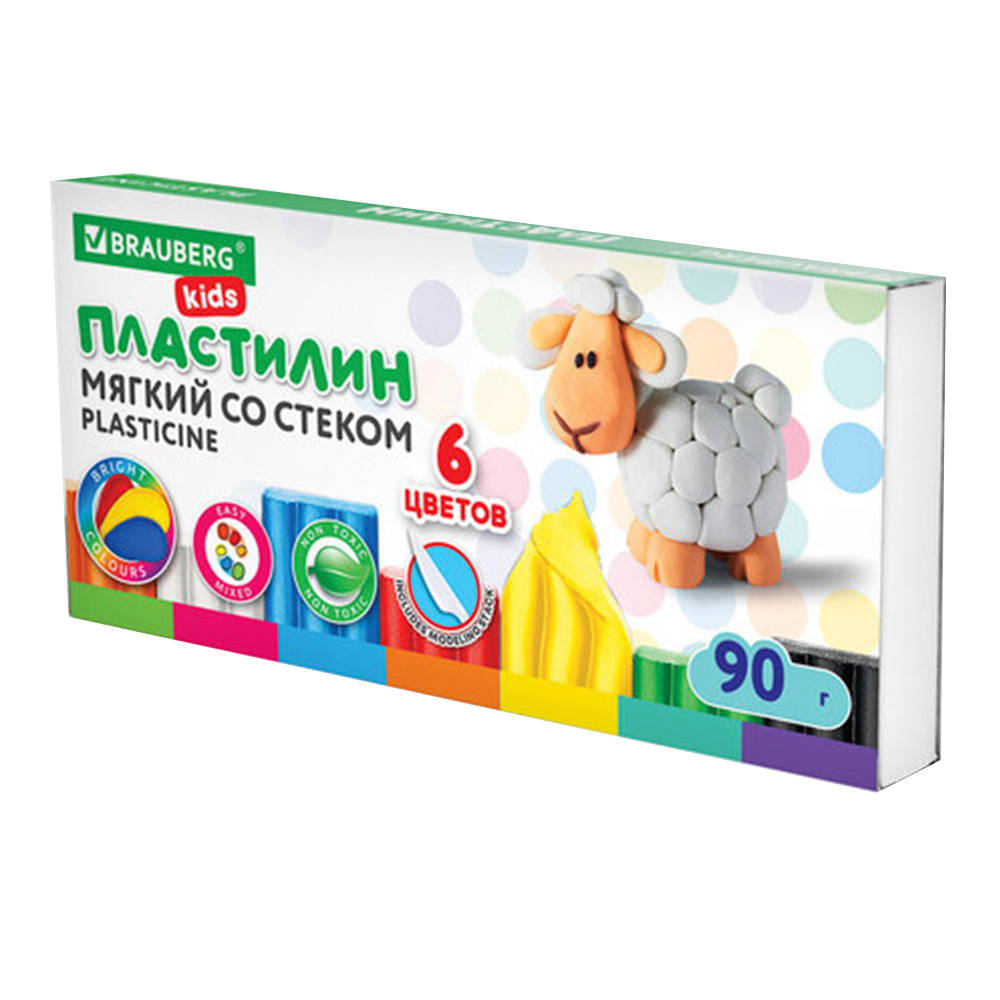 Пластилин Brauberg 106493 Kids, со стеклом 90 г, 6 цветов