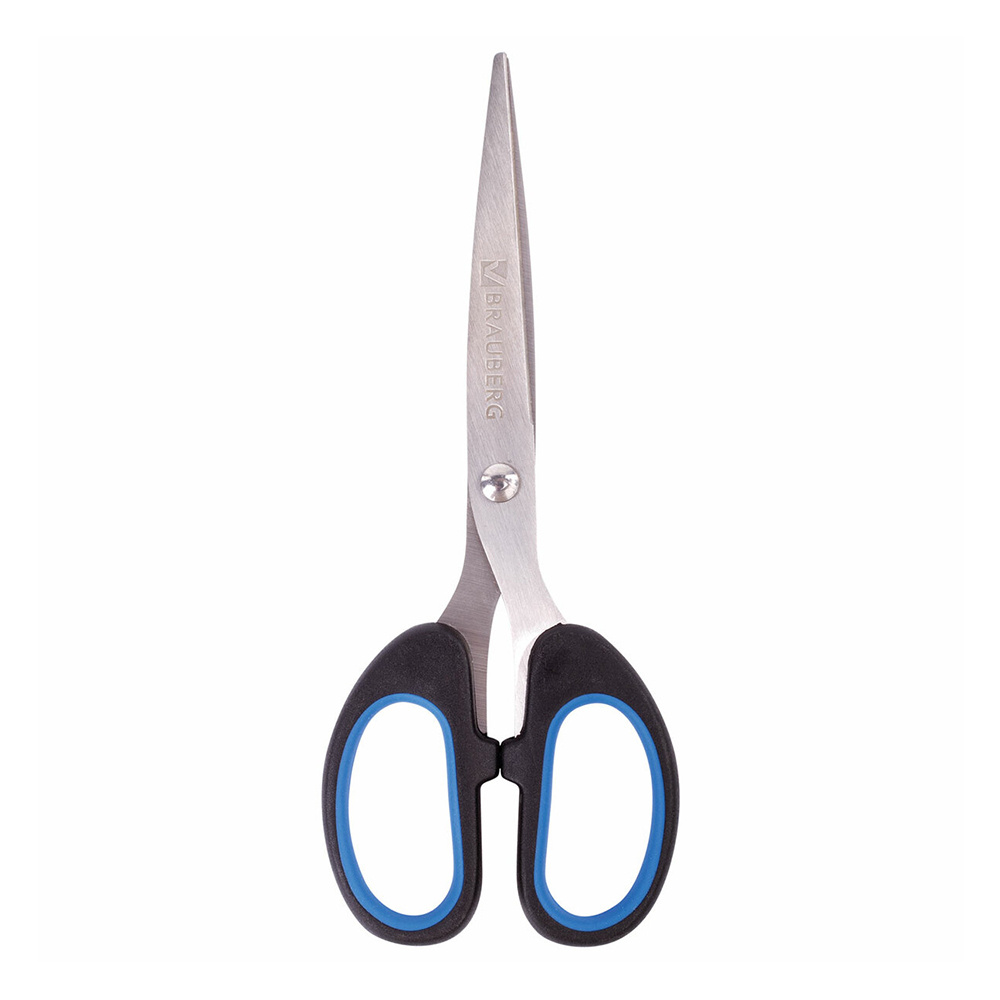 Ножницы канцелярские Brauberg 236447 Classic+, цвет: черно-синий, классической формы, 160 мм