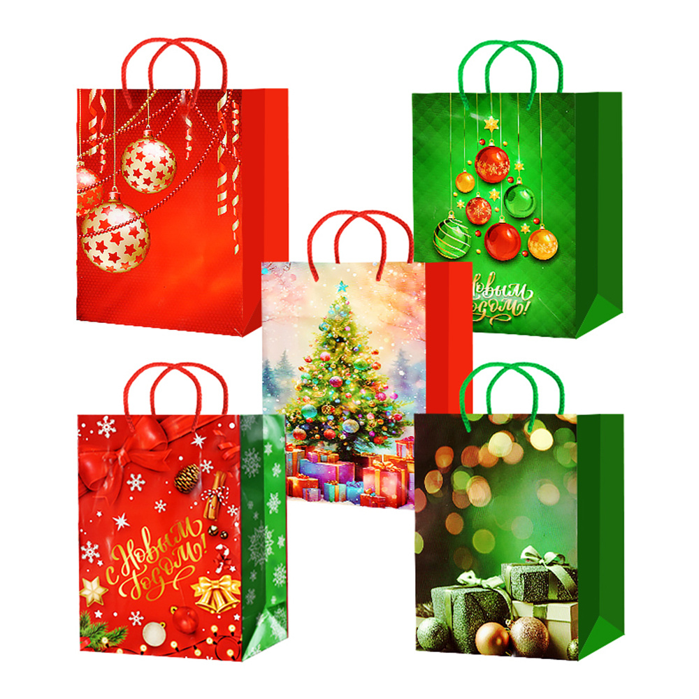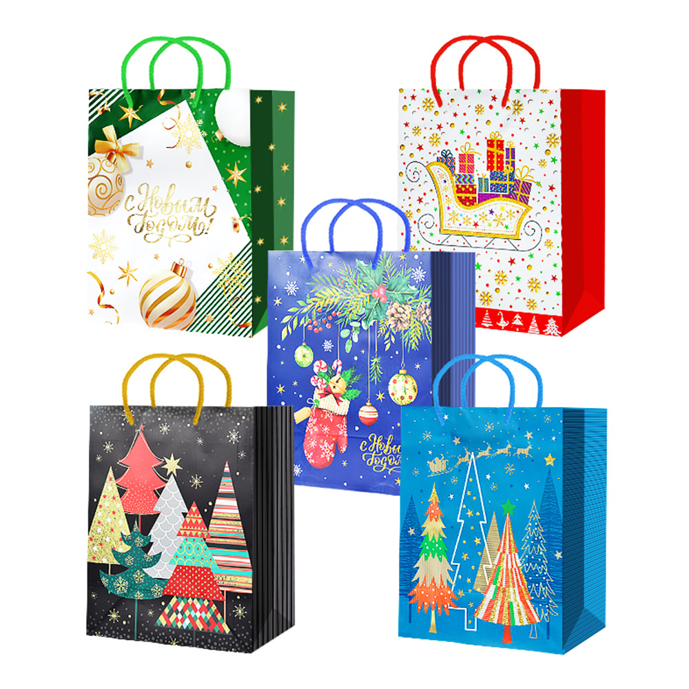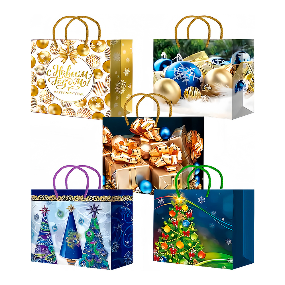Пакет подарочный M25-246/247/248/249/250 Елочки, подарки 18*22*10 см, в ассортименте