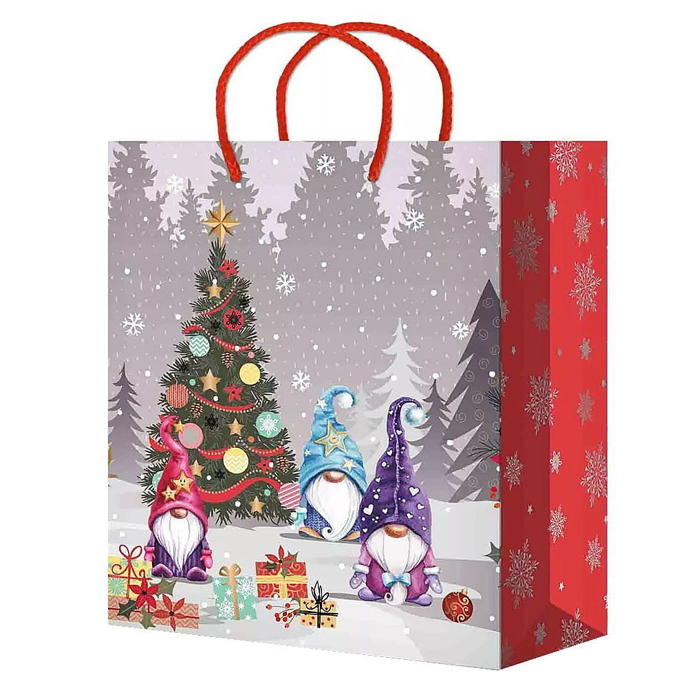 Пакет подарочный M-201/202/203/204/205 Дед мороз на красном 18*22*10 см, в ассортименте