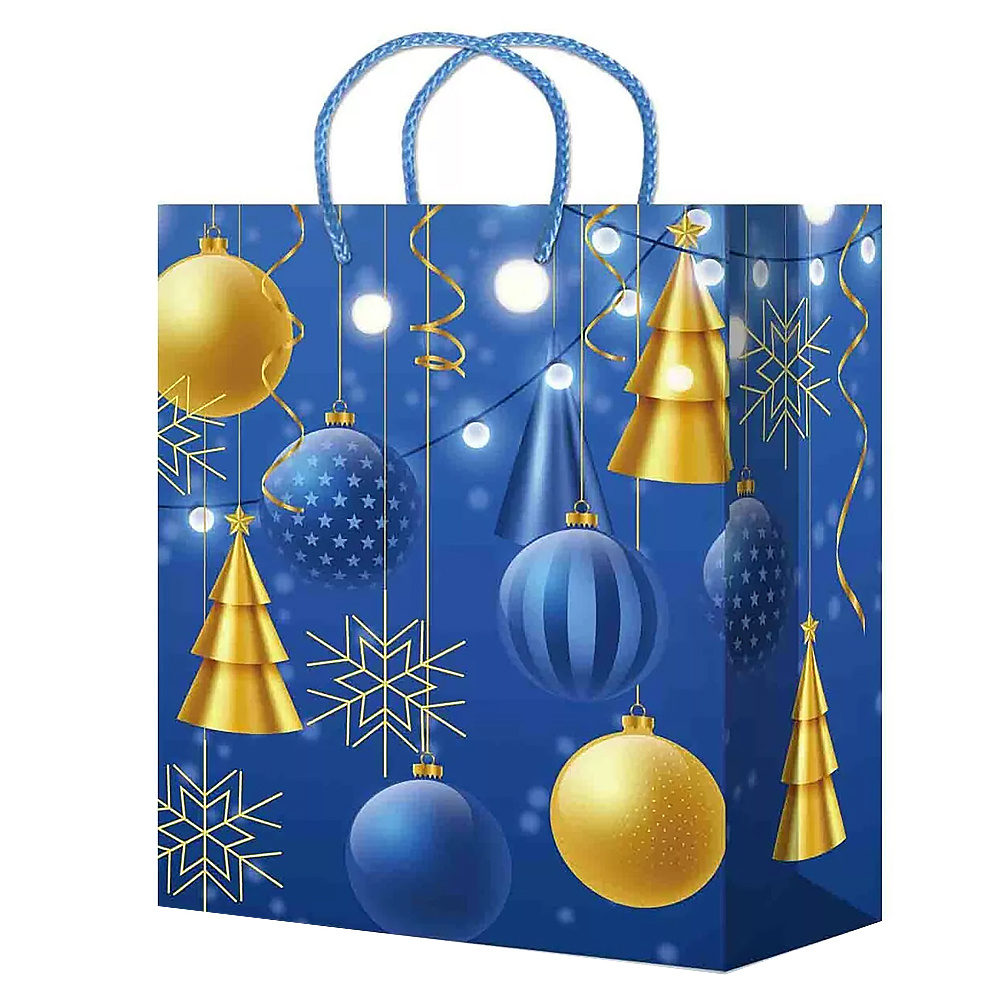 Пакет подарочный Q25-03/04/05/06/07 Елочки, шары 250*250*100 см, в ассортименте