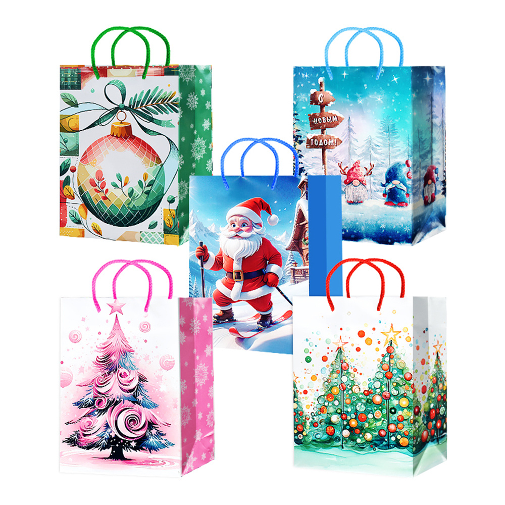 Пакет подарочный MS25-621/622/623/624/625 Дед Мороз, елочки 14*20*6,5 см, в ассортименте