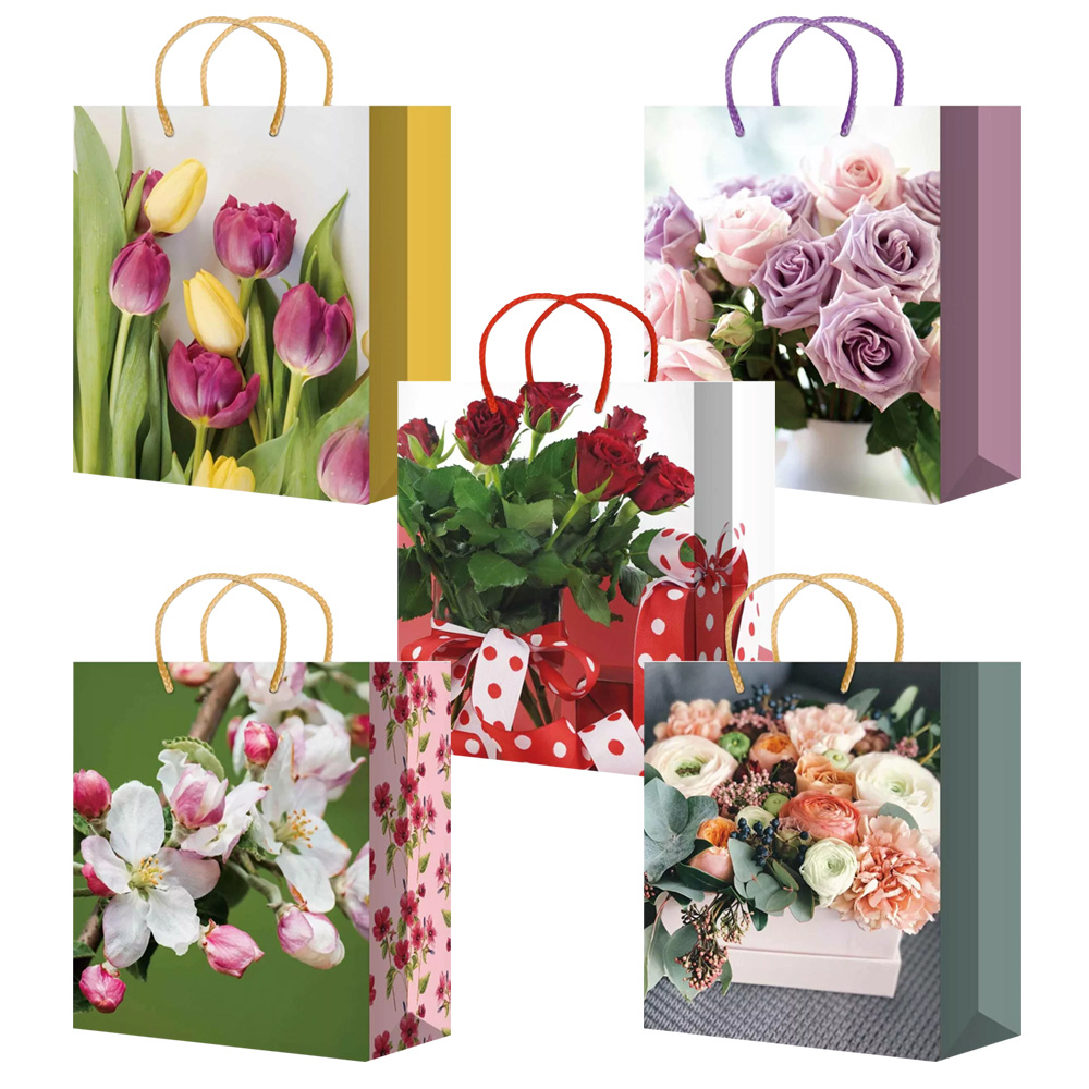 Пакет подарочный MS25-611/612/613/614/615 Цветы 14*20*6,5 см, в ассортименте