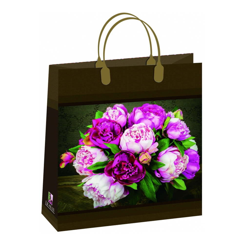 Сумка полиэтиленовая с пластиковыми ручками Букет пионов, с пластиковыми ручками 26*23 см