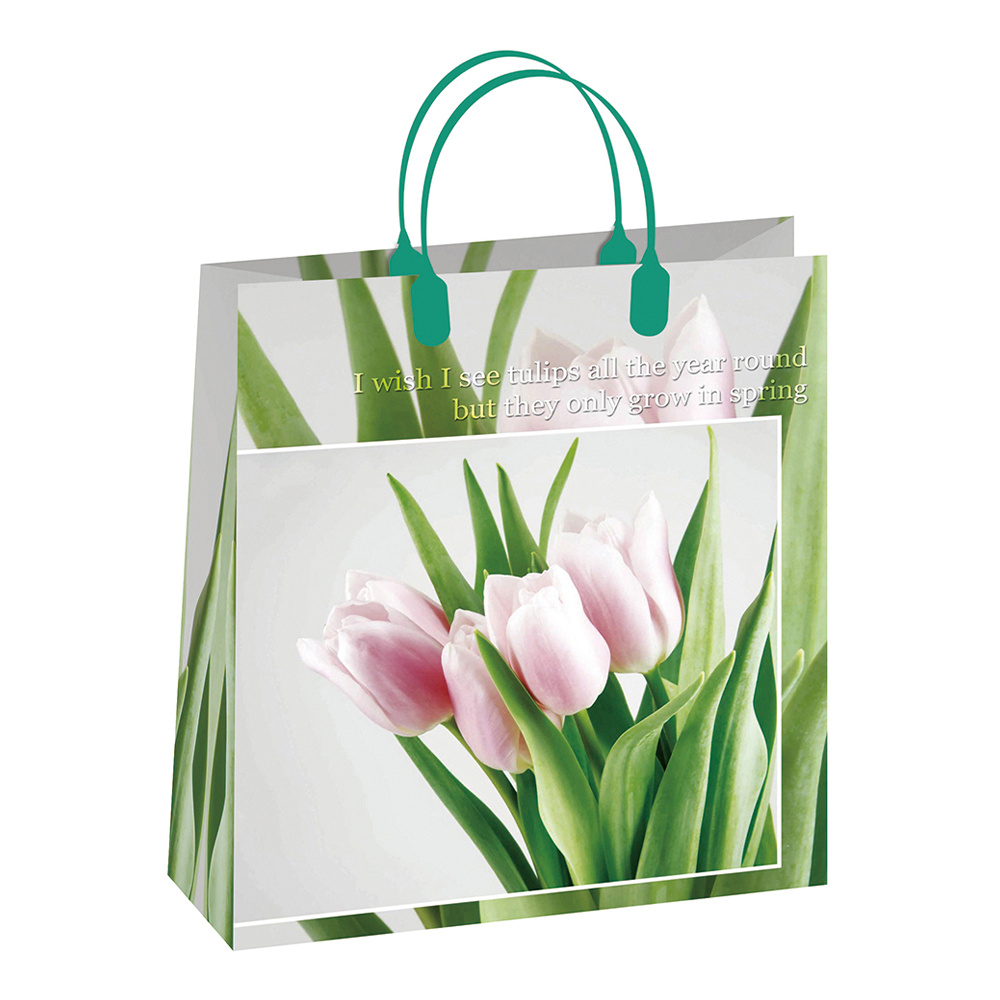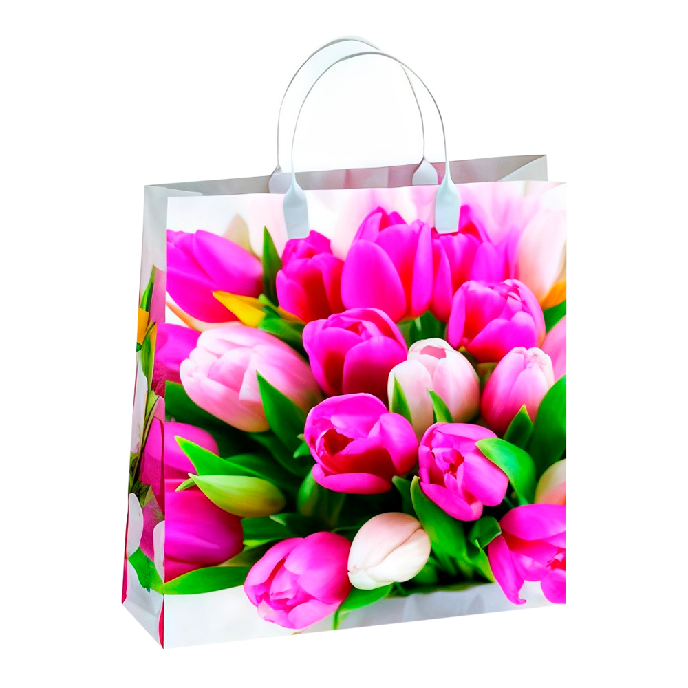 Сумка полиэтиленовая с пластиковыми ручками Тюльпаны, с пластиковыми ручками 26*23 см