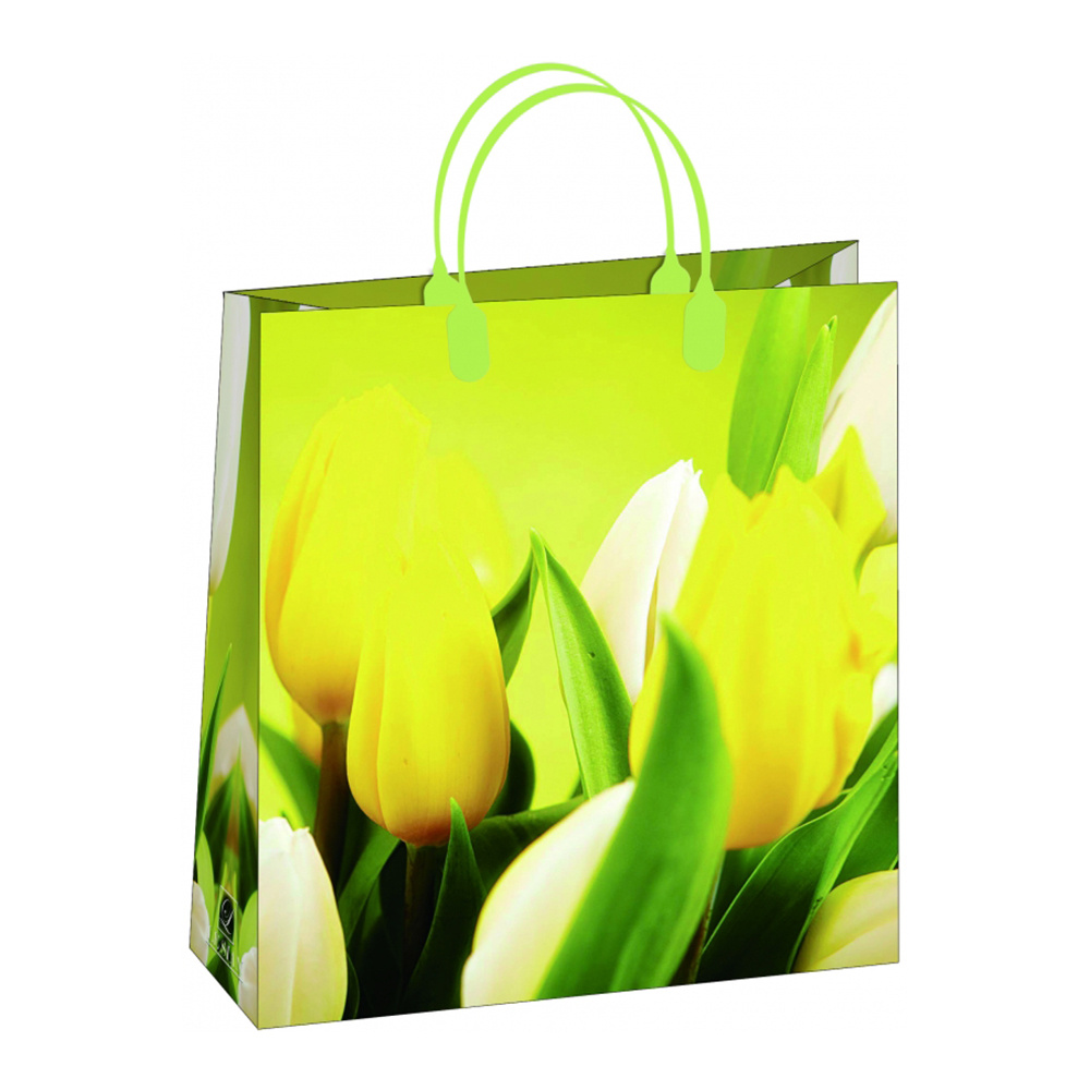 Сумка полиэтиленовая с пластиковыми ручками Желтые тюльпаны 23*26 см