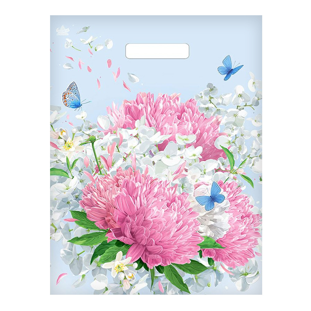 Пакет полиэтиленовый Нежная хризантема, вырубная ручка 31*40 см