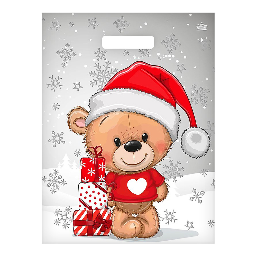 Пакет полиэтиленовый н00245465 Мишка с подарками, с прорубной ручкой 31*40 см